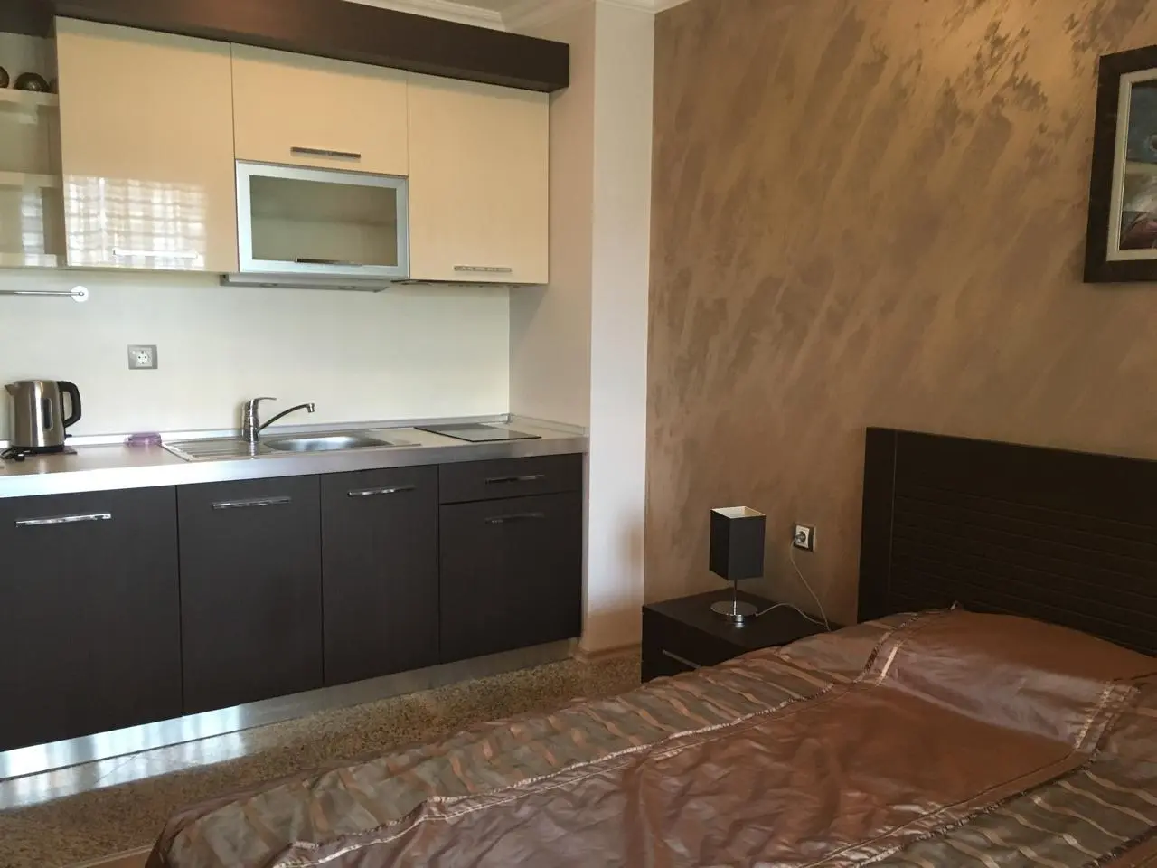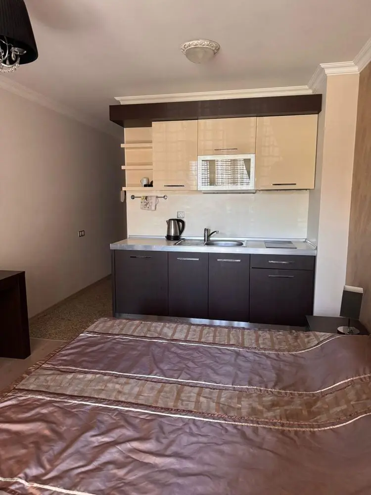 На продажу предлагается современная меблированная студия в элитном комплексе Rose Gardens в городе Поморие. Апартамент расположен на 2 этаже, его общая площадь составляет 38 м². Комплекс введён в эксплуатацию и имеет Акт 16. До моря всего около 50 метров, что позволяет в любой момент наслаждаться прогулками по набережной и отдыхом на пляже. Стоимость студии — 73 000 евро. Такса поддержки составляет 12 евро за м² в год, что включает обслуживание общих частей и инфраструктуры комплекса. Территория охраняемая, с контролируемым доступом, что гарантирует приватность и безопасность для владельцев и гостей.