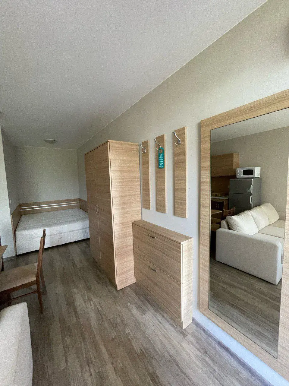 Предлагается просторная студия стоимостью €58 000, расположенная на 1 этаже комплекса Sorrento Sole Mare, общей площадью 42 м². Квартира имеет Акт 16, такса обслуживания составляет €12,00 за м² в год. До моря всего около 200 м. Студия полностью меблирована, оснащена техникой и располагает прямым выходом к бассейну. В непосредственной близости находится крупный супермаркет Mercury, что делает проживание особенно удобным.