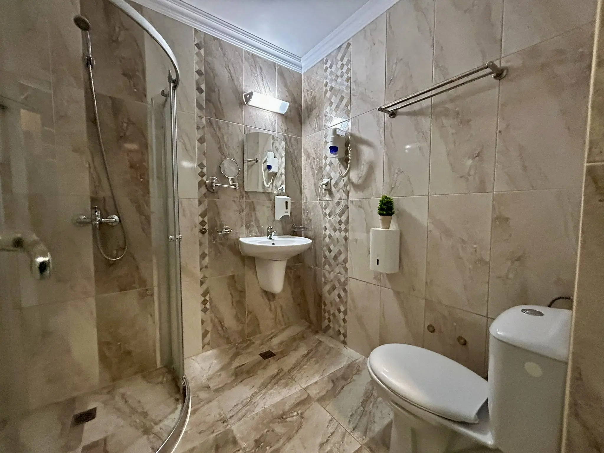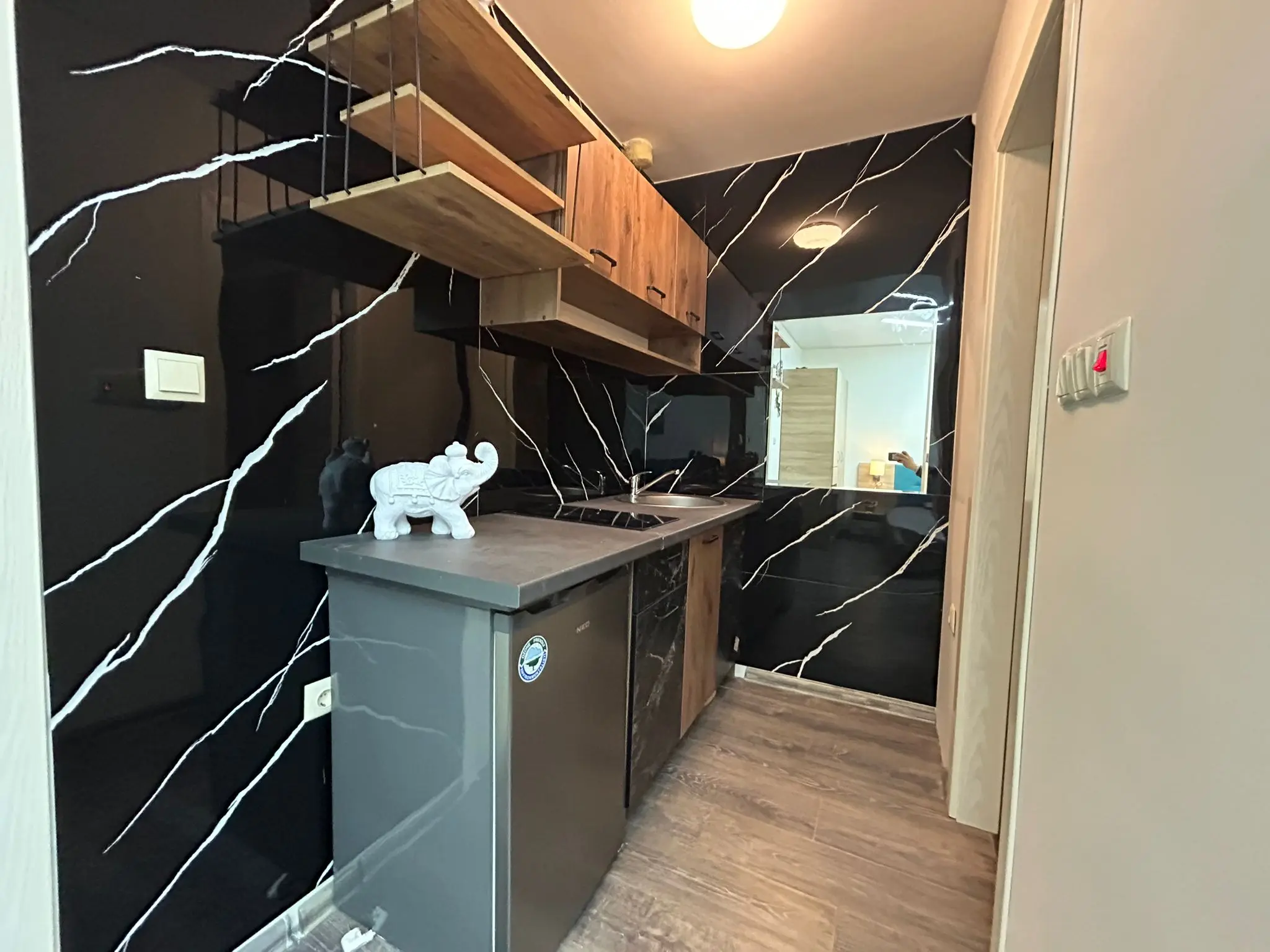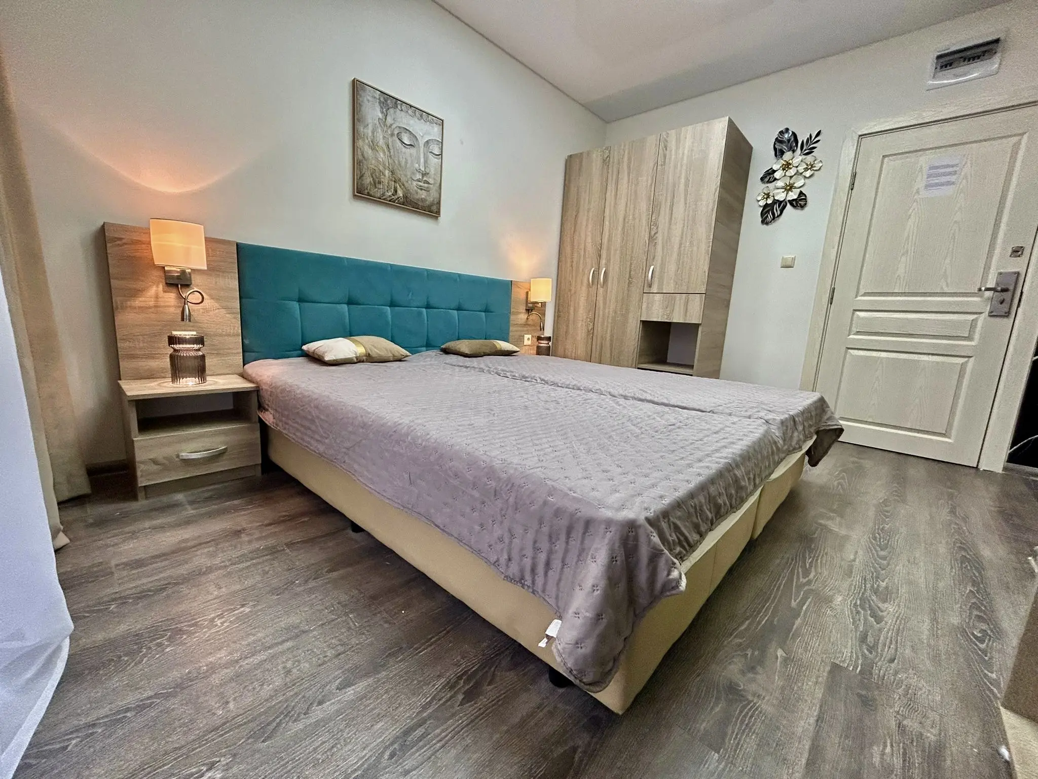 Продаётся светлая меблированная студия в современном комплексе Tarsis на Солнечном Береге — всего в 500 м от моря и пляжа. Общая площадь — 30,16 м², этаж — 5, стоимость — 57000 €, такса обслуживания — 16,80 €. Здание введено в эксплуатацию (Акт 16). В квартире натяжные потолки. Планировка продумана для комфортного отдыха и круглогодичной жизни: открытая гостиная с мини-кухней, санузел с душем и WC, а также просторная терраса с видом на зелёную зону; из окон — приятные виды на улицу и аквапарк. Студия полностью меблирована и укомплектована — можно пользоваться сразу, без дополнительных вложений.