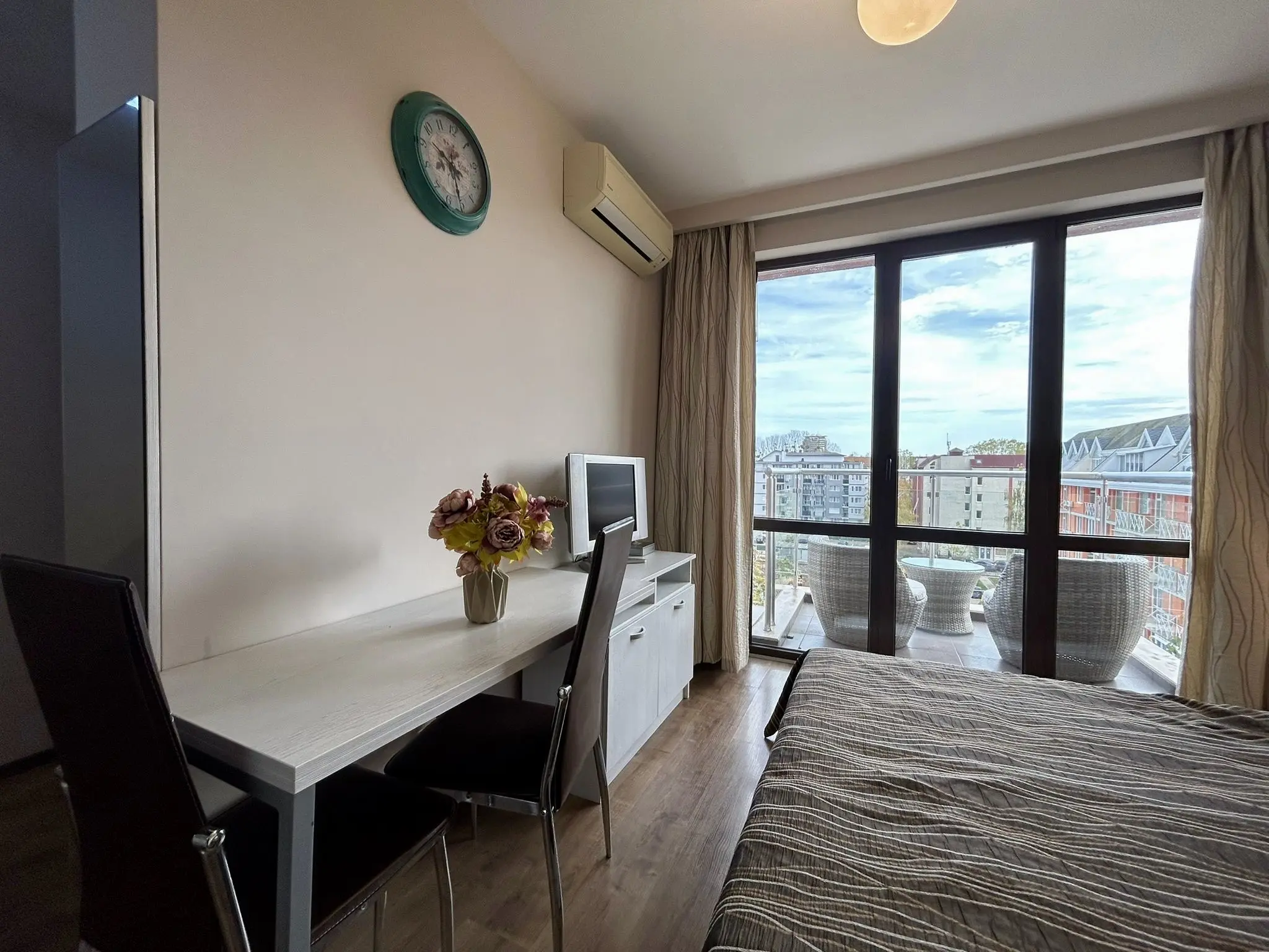 Студия в комплексе Tarsis — это удачное сочетание курортного уюта, зелёного окружения и развитой инфраструктуры для отдыха и жизни. Объект подойдёт как для личного пользования, так и для получения дохода от аренды благодаря востребованности комплекса среди туристов. Это практичный и ликвидный вариант недвижимости на черноморском побережье Болгарии с хорошим потенциалом роста стоимости.