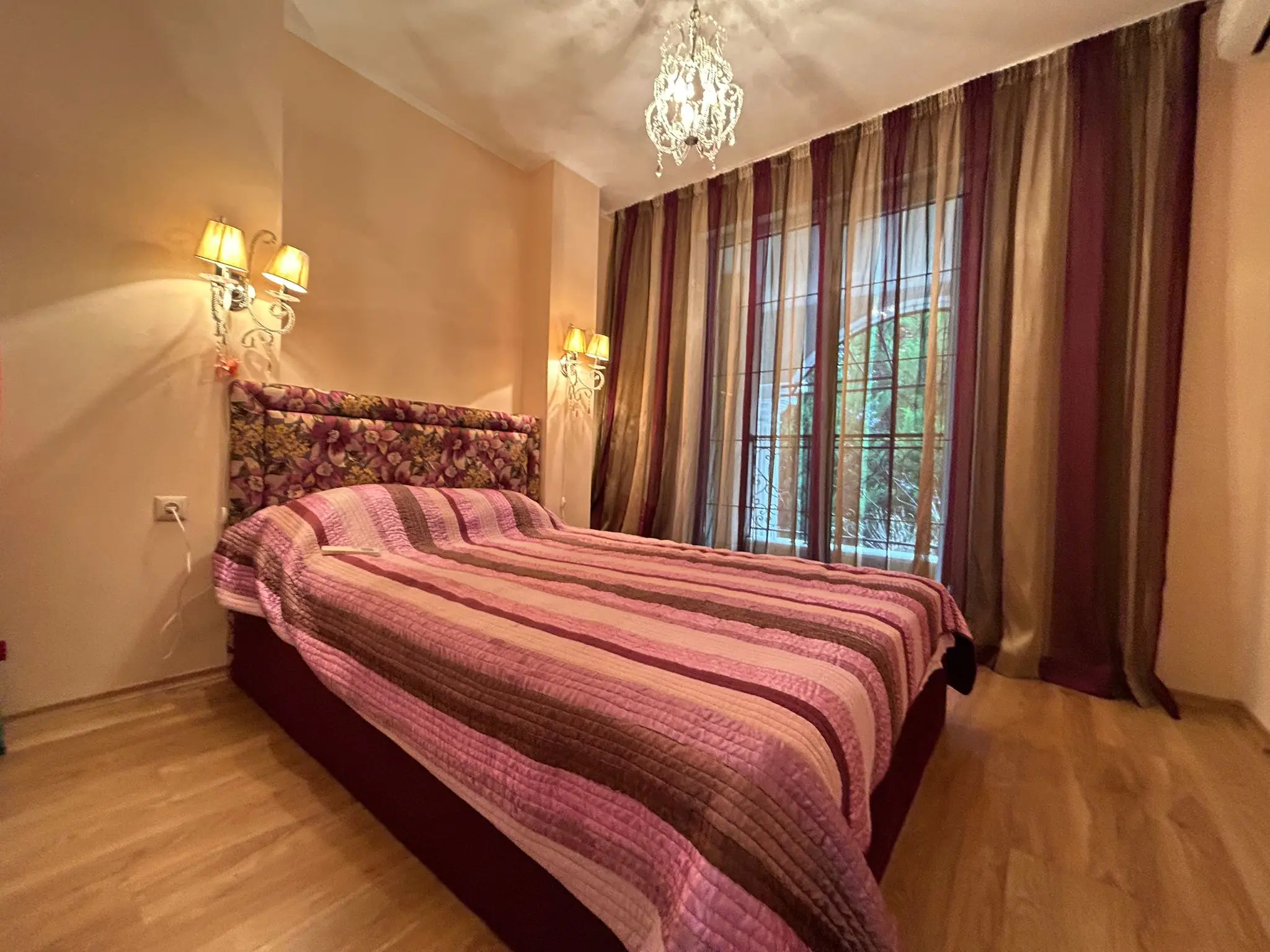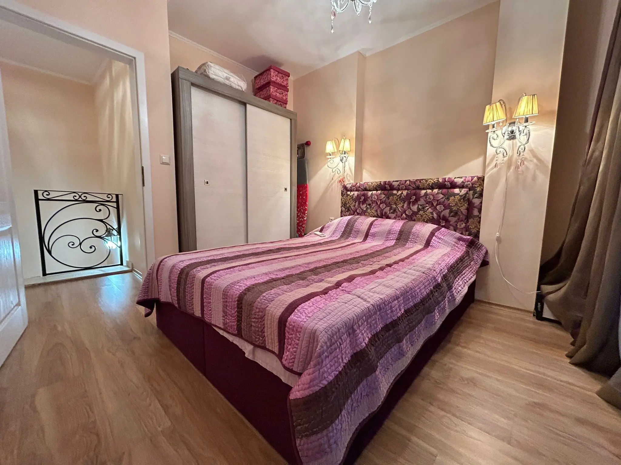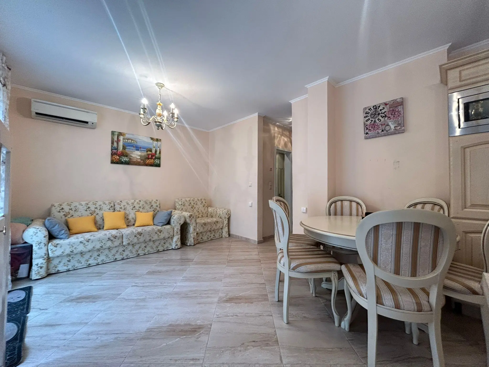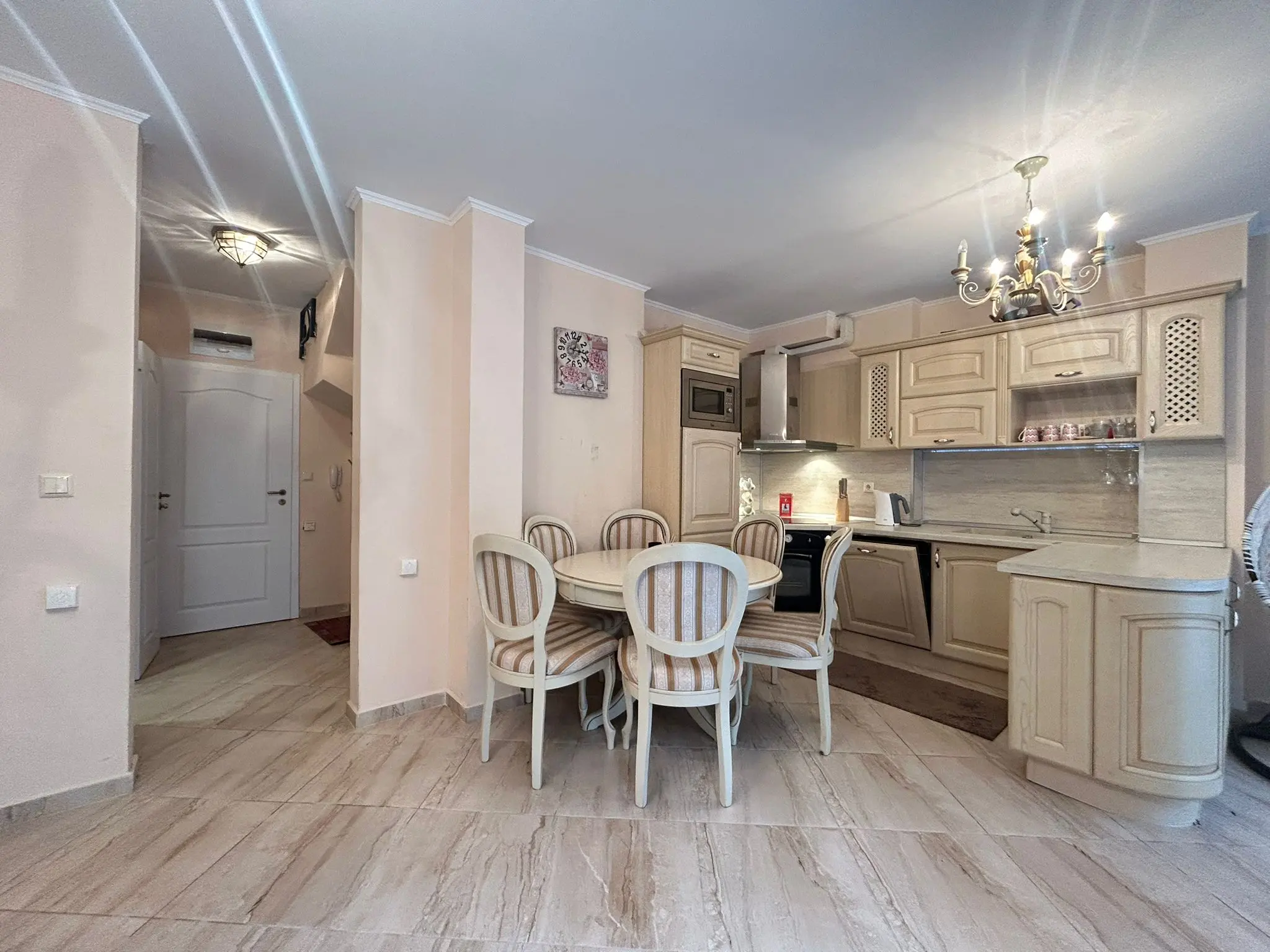 Предлагается стильная трехкомнатная квартира-мезонет площадью 105 м², расположенная на 1 этаже в престижном комплексе Venera & Anastasia Palace на курорте Солнечный Берег. Стоимость объекта составляет 149 000 €, ежегодная такса обслуживания — 1 260 €. Квартира имеет Акт 16, что подтверждает полную готовность к проживанию и оформлению собственности. Расстояние до моря — около 400 м, что позволяет легко добраться до пляжа пешком.