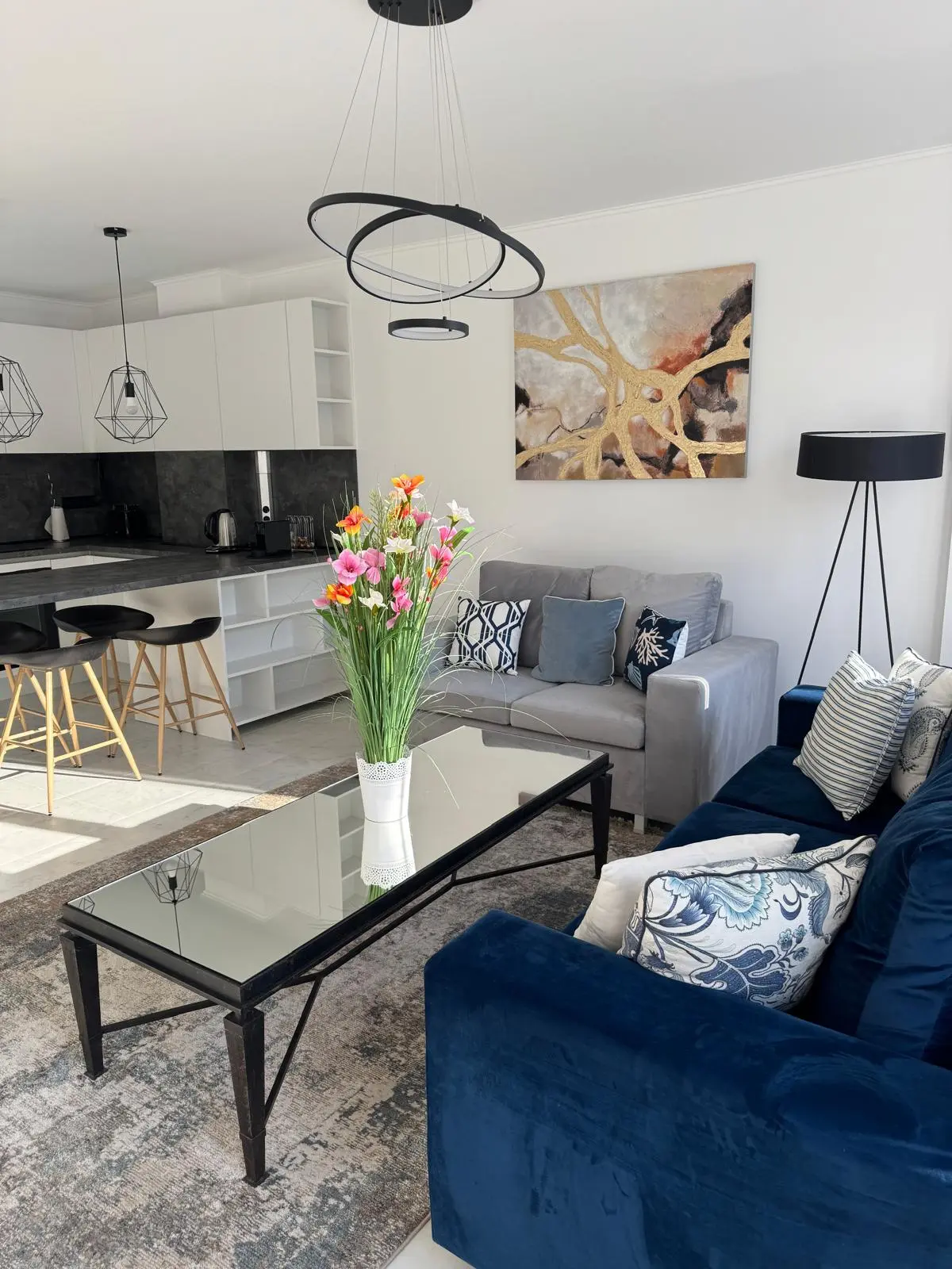 В квартире предусмотрена просторная гостиная с кухонной зоной, две отдельные спальни, два санузла и балкон. Интерьер выполнен в светлых тонах, что создаёт ощущение уюта и простора. Апартамент подходит как для личного проживания круглый год, так и для сдачи в аренду.
