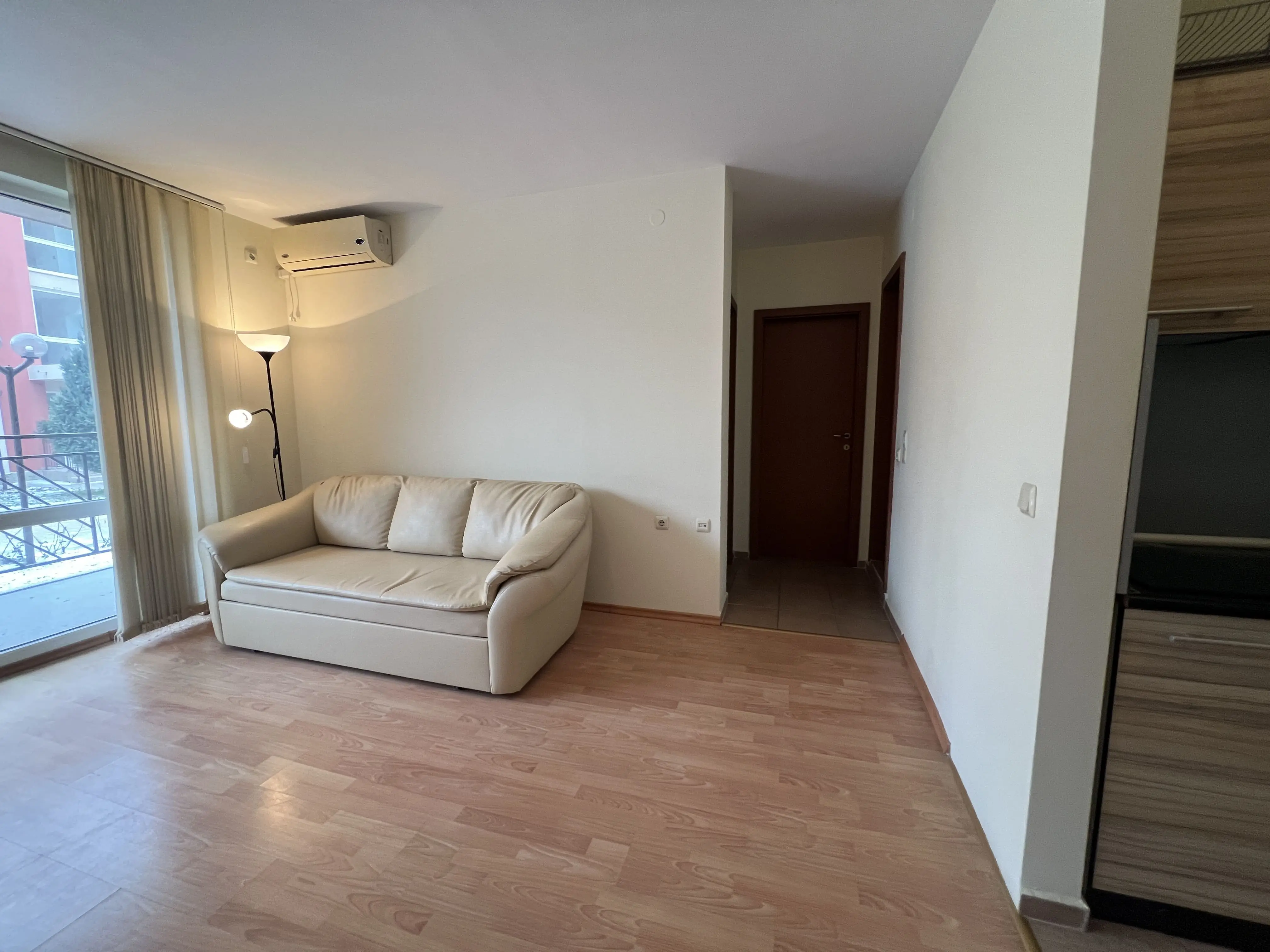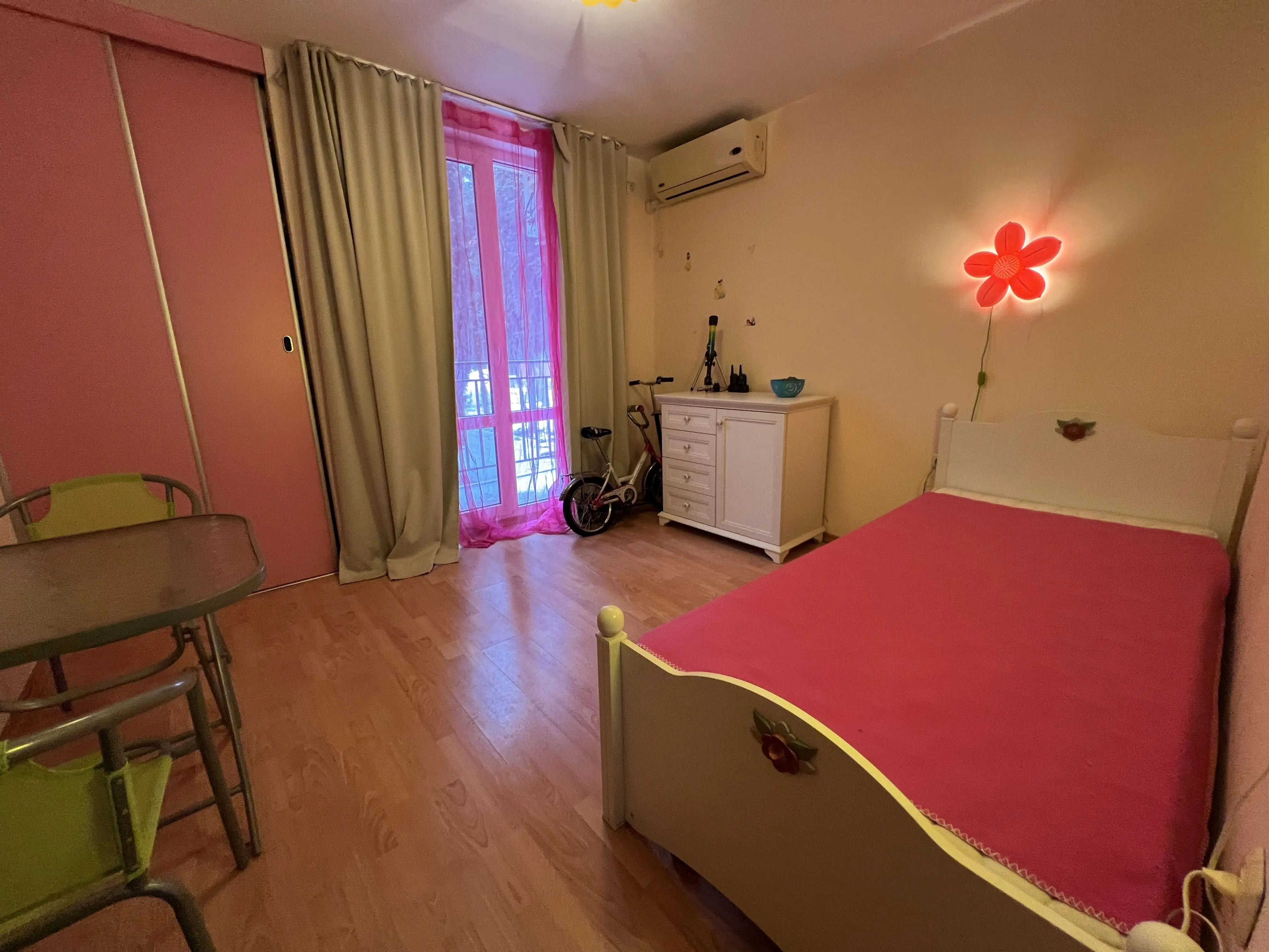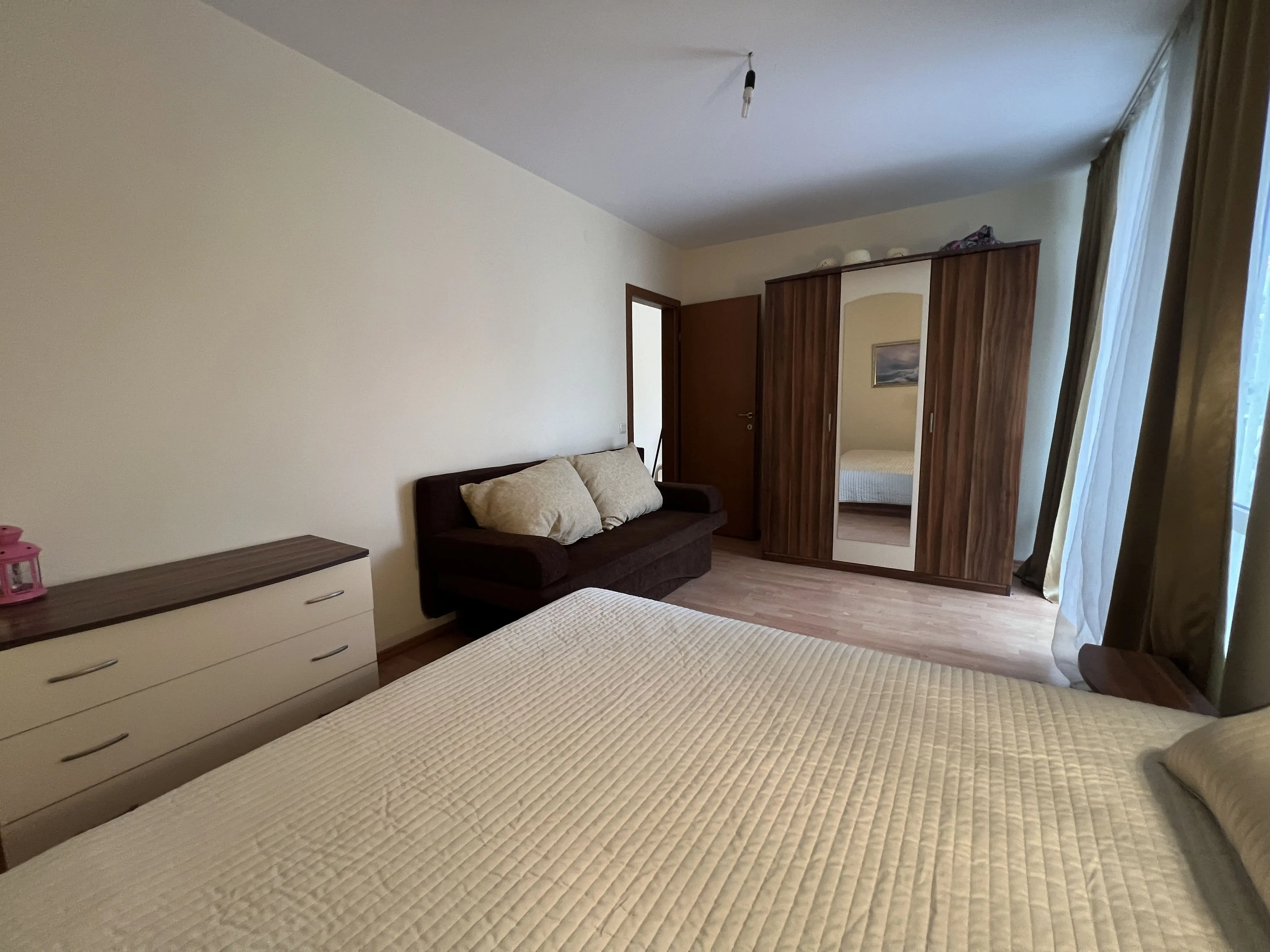 Трёхкомнатная квартира общей площадью 90 м² расположена на 1 этаже комплекса Holiday Fort Club на курорте Солнечный Берег и предлагается по цене 81 900 €. Объект с Актом 16 и таксой поддержки 13,50 € за м² в год полностью меблирован и готов к проживанию или сдаче в аренду. Из окон и с двух террас открывается вид на бассейн и ухоженную территорию комплекса, а дорога до моря занимает около 800 м. Планировка с двумя спальнями и просторной гостиной с кухонной зоной делает квартиру удобной для семейного отдыха и долгосрочного проживания.
