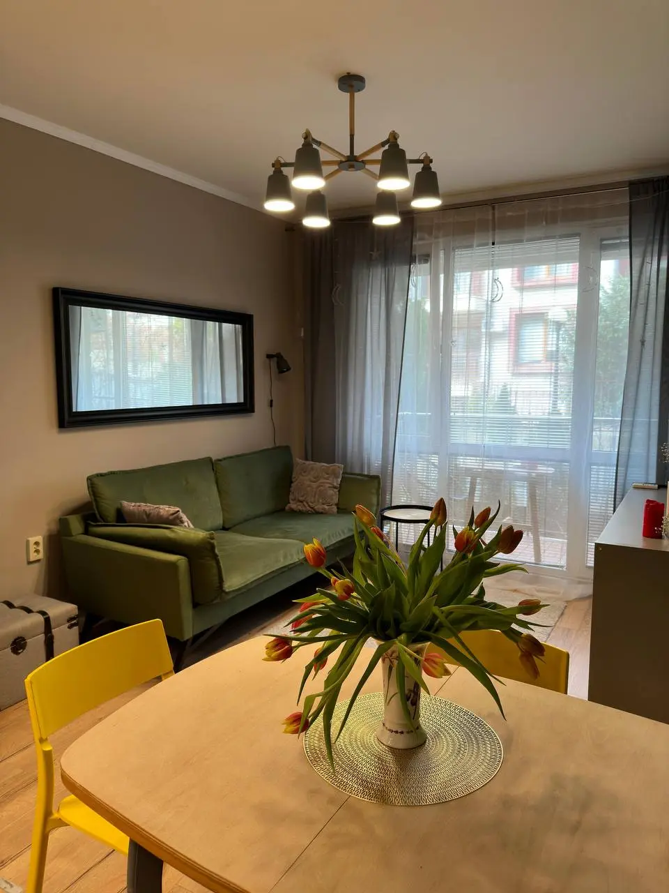 Квартира полностью готова к проживанию и продается с мебелью и бытовой техникой. Планировка включает просторную гостиную с кухонной и столовой зонами, две спальни, ванную комнату и террасу. Интерьер выполнен в современном стиле с использованием качественных материалов.
