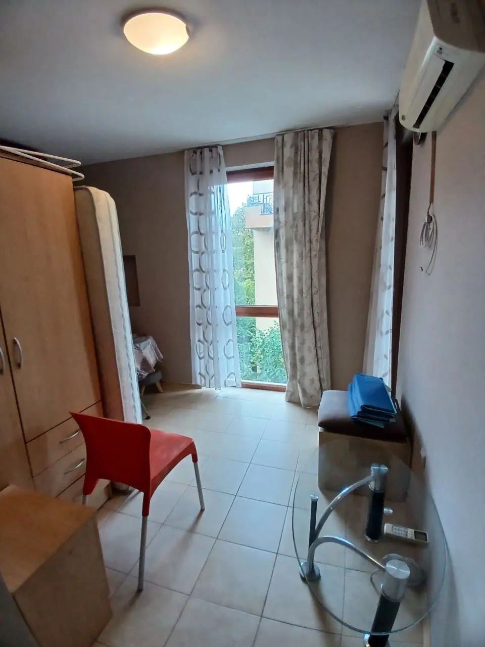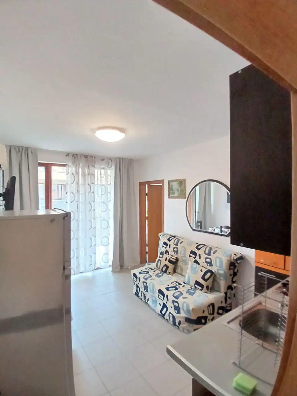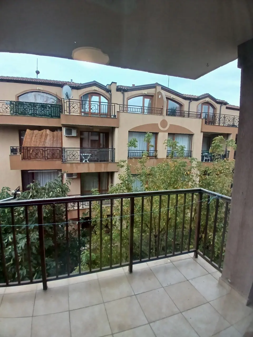 Предлагается трехкомнатная квартира площадью 68 м², расположенная на 5 этаже в жилом комплексе Sunny View North на курорте Солнечный Берег. Стоимость составляет 72 000 €, такса обслуживания — 500 лев в год. Объект имеет Акт 16 и находится примерно в 500 м от моря. Квартира полностью меблирована и оснащена техникой, готова к проживанию или сдаче в аренду. Из гостиной есть выход на балкон, а окна обеспечивают приятный вид на территорию комплекса.