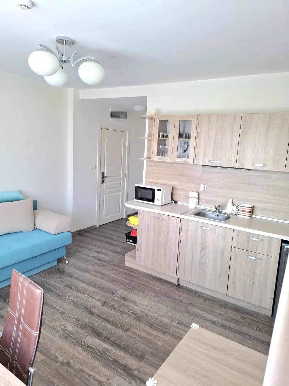 Уютная трехкомнатная квартира площадью 70 м² расположена на 3 этаже в современном комплексе Tarsis Club & SPA на Солнечном Береге. Стоимость объекта составляет 95 500 €, годовая такса обслуживания — 1 000 €. Квартира с видом на город, включает светлую гостиную с кухонной зоной, две спальни, санузел и просторную террассу. Жилье продается с мебелью и техникой, полностью готово к проживанию. Есть Акт 16. До моря около 700 м, что делает объект удобным как для отдыха, так и для сдачи в аренду.