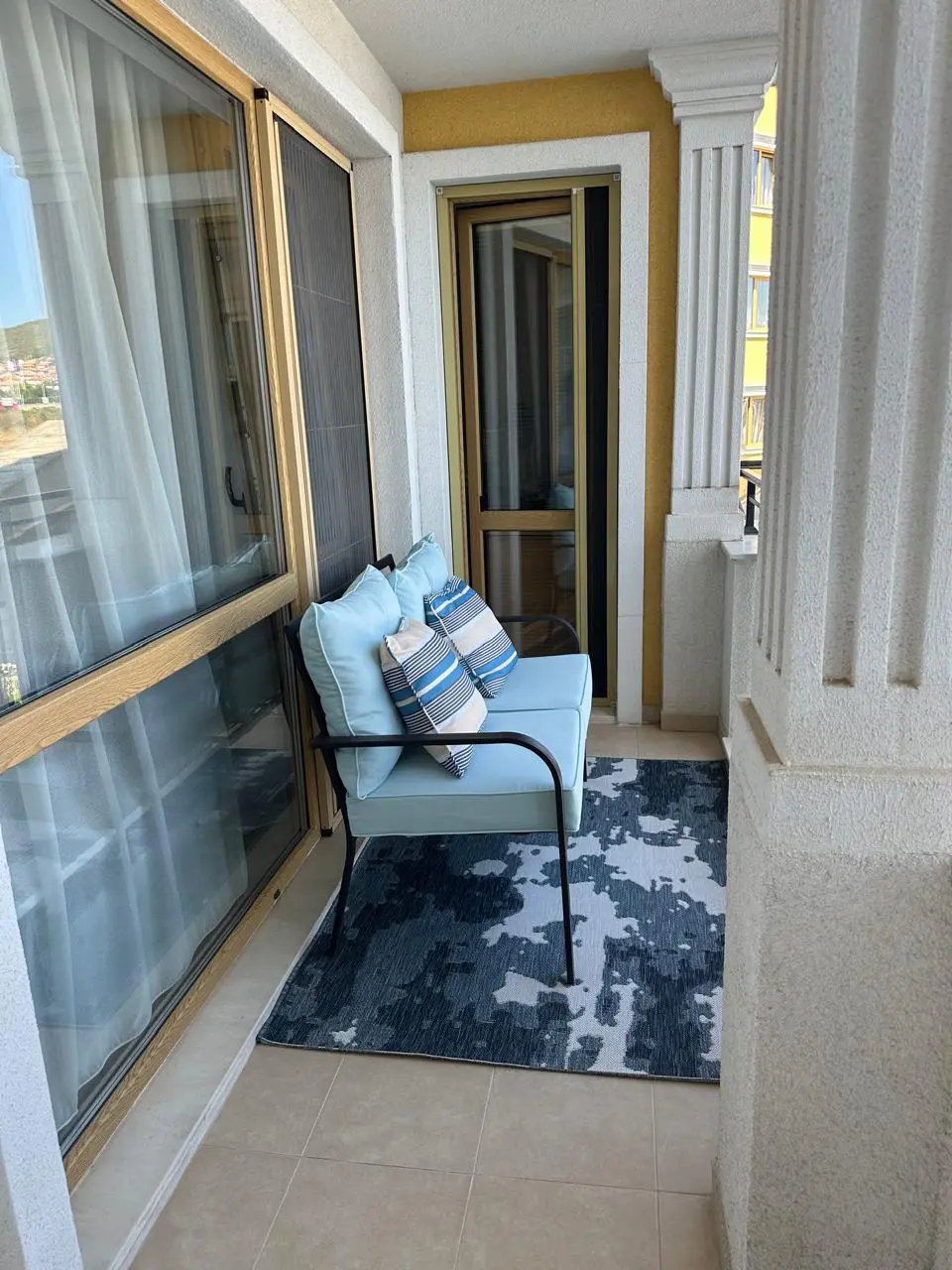 Просторная трёхкомнатная квартира общей площадью 102 м² расположена на 2 этаже престижного комплекса Villa Florence в Святом Власе и предлагается по цене 290 000 €. Апартамент с Актом 16 и таксой поддержки 22 € за м² в год полностью меблирован, оснащён центральной системой отопления и охлаждения и готов к круглогодичному проживанию или аренде. Из окон и с террасы открываются виды на бассейн, море и горы, а до пляжа всего около 300 м. Планировка включает две отдельные спальни, гостиную с кухонной зоной и 2 санузла, что делает квартиру удобной для семьи и приёма гостей.