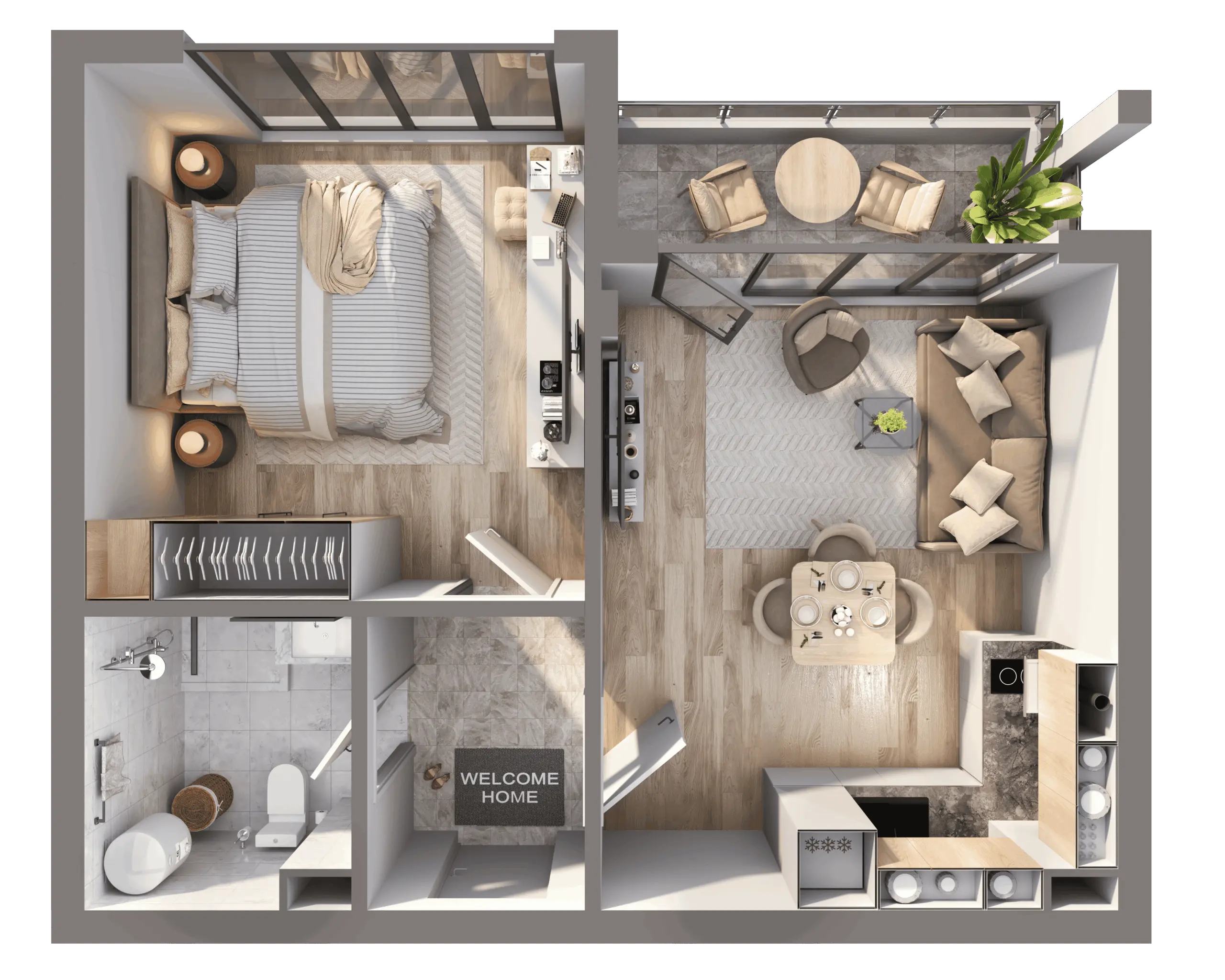 Квартиры сдаются в качественной чистовой отделке, что позволяет сразу приступить к меблировке и проживанию: